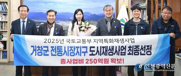 [인천광역신문] 박진 기자 | 거창군은 국토교통부가 전국 지자체를 대상으로 실시한 2025년 지역특화재생 공모사업에 ‘거창군 전통시장지구 도시재생사업’이 최종 선정됐다고 23일 밝혔다.