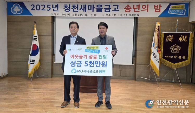권기동 청천새마을금고 이사장은 “지역 주민과 함께 성장해 온 금융기관으로서 지역사회에 보답하는 것은 당연한 책무”라며 “앞으로도 나눔과 상생의 가치를 바탕으로 지역과 함께하는 새마을금고가 되겠다”고 밝혔다.