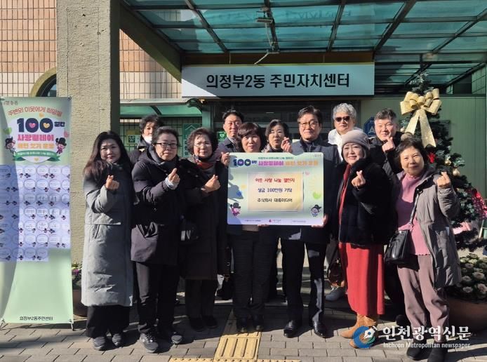 [인천광역신문] 박진 기자 | 의정부시 의정부2동주민센터는 12월 22일 주식회사 대륙미디어가 ‘100일간 사랑릴레이 배턴 잇기’에 동참해 취약계층을 위한 성금 100만 원을 전달했다고 밝혔다.