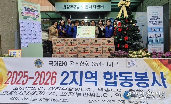 [인천광역신문] 박진 기자 | 의정부시 의정부2동주민센터는 12월 20일 국제라이온스협회 354-H지구 제2지역이 ‘100일간 사랑릴레이 배턴 잇기’에 동참해 취약계층을 위한 라면 30상자를 기부했다고 밝혔다.