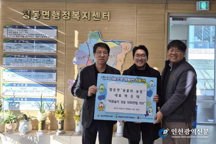 [인천광역신문] 박진 기자 | 점동면 관내 꿀꿀이 농장 박승대 대표가 지난 12월 22일, 연말을 맞아 이웃사랑 성금 500만원을 경기사회복지공동모금회를 통해 점동면 지정기탁으로 점동면행정복지센터에 전달하며 지역사회에 따뜻한 감동을 전했다.