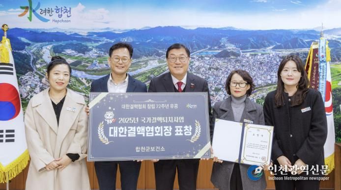 [인천광역신문] 박진 기자 | 합천군 보건소는 지역사회 결핵 발생률 감소와 결핵 퇴치를 위한 적극적인 사업 추진 성과를 인정받아 대한결핵협회 창립 72주년을 기념하여 ‘2025년 결핵퇴치사업 유공 대한결핵협회 기관상’을 수상했다고 23일 밝혔다.