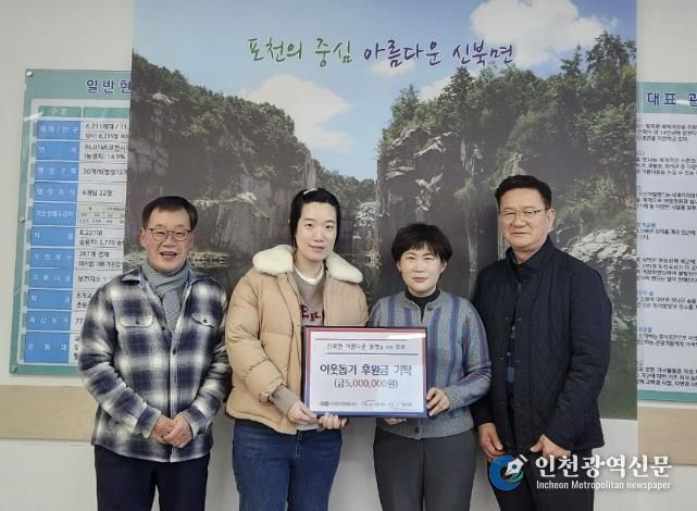 신미숙 신북면장은 “어려운 경제 여건 속에서도 해마다 변함없는 나눔을 실천해 주시는 다경실업㈜에 깊은 감사의 말씀을 드린다”며 “기탁된 성금은 도움이 절실한 이웃들에게 실질적인 도움이 될 수 있도록 투명하고 소중하게 사용하겠다”고 밝혔다.