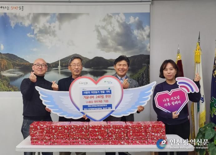 [인천광역신문] 박진 기자 | 포천시 소흘읍 행정복지센터는 지난 22일, 한마음교회와 ㈜마른파이브가 지역 내 취약계층을 돕기 위한 겨울 내복 240벌을 기탁했다고 밝혔다.