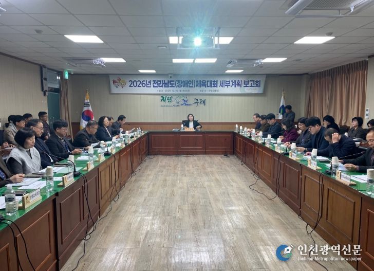 [인천광역신문] 박진 기자 | 구례군은 지난 12월 22일, 군청 상황실에서 '제65회 전라남도체육대회 및 제34회 전라남도장애인체육대회 세부계획 보고회'를 개최했다고 밝혔다.