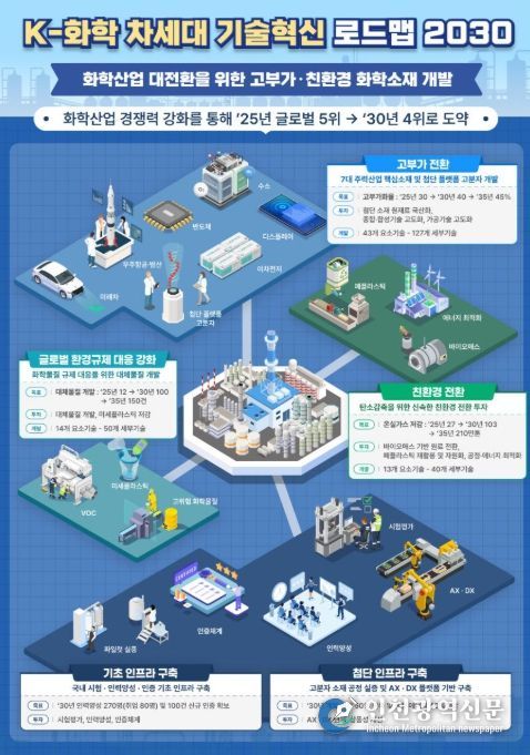 이 날 발표된 'K-화학 차세대 기술혁신 로드맵 2030' 은 현재 글로벌 5위인 한국 화학산업을 2030년 4위로 도약시키기 위한 실행전략을 담고 있다. 고부가 전환, 친환경 전환, 글로벌 환경규제 대응강화라는 3대 축을 중심으로 R&D 및 인프라를 고도화하여 핵심소재 및 공정기술을 확보할 계획이다.