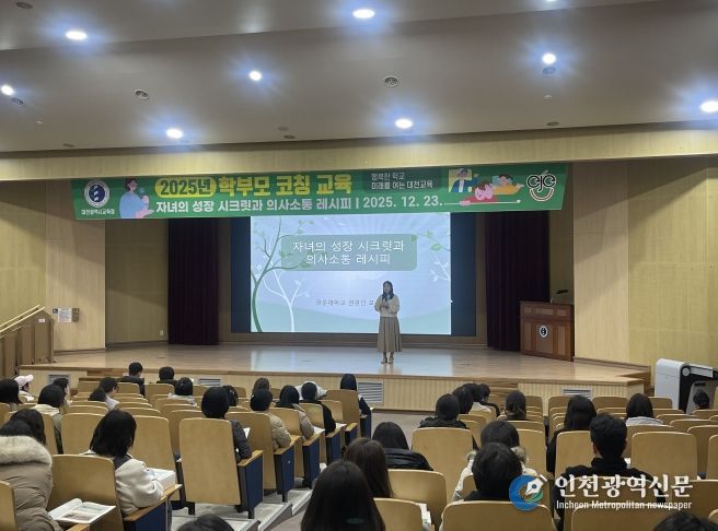 [인천광역신문] 박진 기자 | 대전시교육청은 12월 23일 대전교육과학연구원 강당에서 대전지역 학부모 600명을 대상으로‘자녀의 성장 시크릿과 의사소통 레시피’라는 주제로 학부모 코칭 교육을 실시했다고 밝혔다.