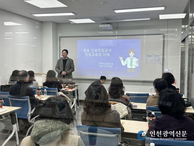 [인천광역신문] 박진 기자 | 대전진로융합교육원은 12월 23일 대전산업정보고등학교 미래직업교육센터에서 중·고등학교 진로전담교사 18명을 대상으로 진행한‘2025학년도 중등 진로전담교사 직무성장 하반기 워크숍(6차)’을 마쳤다고 밝혔다.