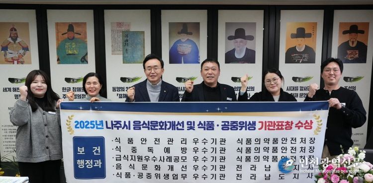 [인천광역신문] 박진 기자 | 전라남도 나주시가 식품 안전 관리 강화와 건강한 음식문화 조성을 위한 체계적인 행정 추진 성과를 인정받아 2025년 한 해 동안 식품 안전, 급식, 음식문화 등 5개 분야에서 기관 표창을 받으며 우수한 식품 행정 역량을 입증했다.