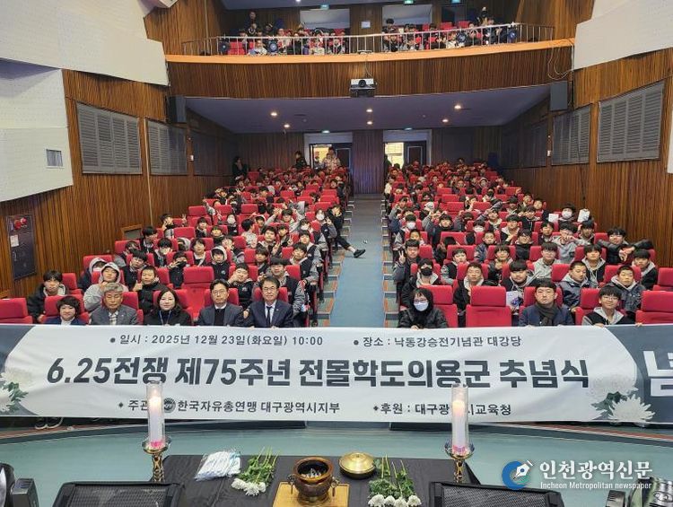 [인천광역신문] 박진 기자 | 한국자유총연맹 대구광역시지부는 지난 12월 23일 낙동강승전기념관 대강당에서 ‘6.25 전쟁 제75주년 학도의용군 추념식’을 개최했다.