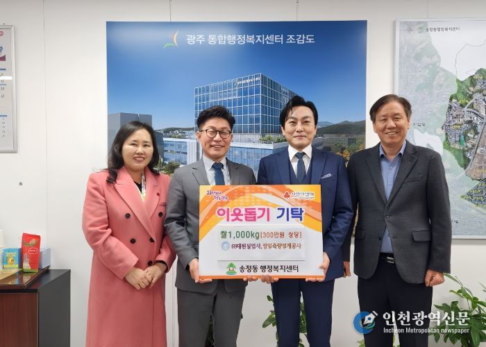 [인천광역신문] 박진 기자 | ㈜대원실업사 이찬호 대표와 성일측량설계공사 문병훈 대표는 23일 광주시 송정동 행정복지센터를 방문해 지역 내 취약계층을 위해 쌀 1천㎏(300만 원 상당)을 기탁했다.