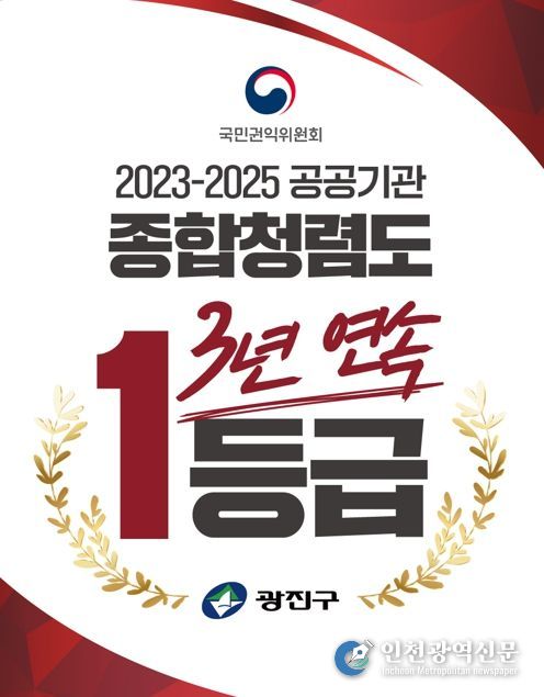 [인천광역신문] 박진 기자 | 광진구는 국민권익위원회가 주관한 2025년 공공기관 종합청렴도 평가에서 3년 연속 1등급을 달성했다.