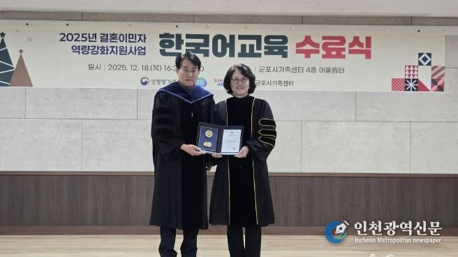 [인천광역신문] 박진 기자 | 군포시 가족센터는 지난 12월 18일 가족센터 어울림터에서 결혼이민자와 중도입국자녀 60명을 대상으로 한국어교육 수료식을 개최했다.