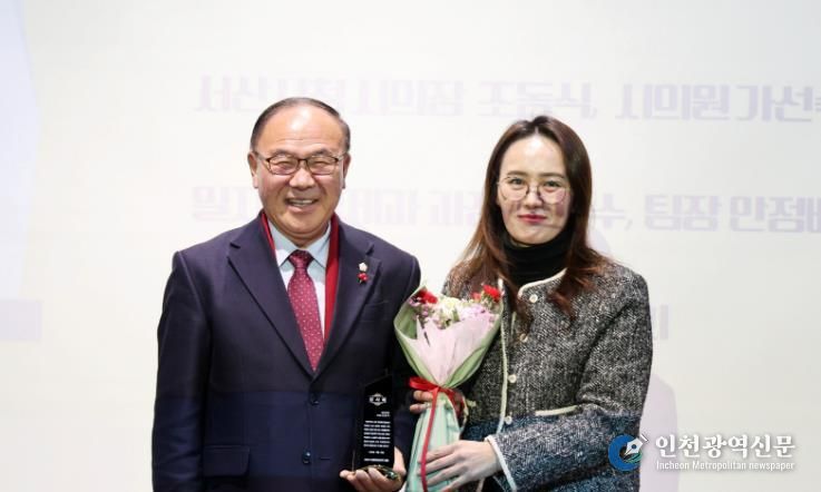 [인천광역신문] 박진 기자 | 서산시의회 조동식 의장이 지난 23일 서산시 번화2로 상인회로부터 감사패를 받았다.