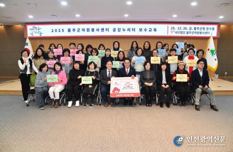 [인천광역신문] 박진 기자 | 사단법인 울주군자원봉사센터가 26일 울주군청 문수홀에서 거점센터 ‘공감누리터’ 자원봉사 코치 40여명을 대상으로 간담회 및 보수교육을 실시했다.