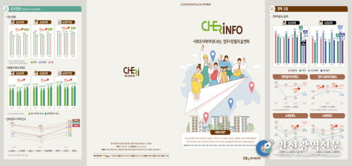 [인천광역신문] 박진 기자 | 청주시정연구원에서 운영하는 공간분석센터는 30일 ‘사회조사데이터로 보는, 청주시민들의 삶 변화’라는 제목으로 인포그래픽 체리인포(CHERiNFO) 제6호를 발간했다.