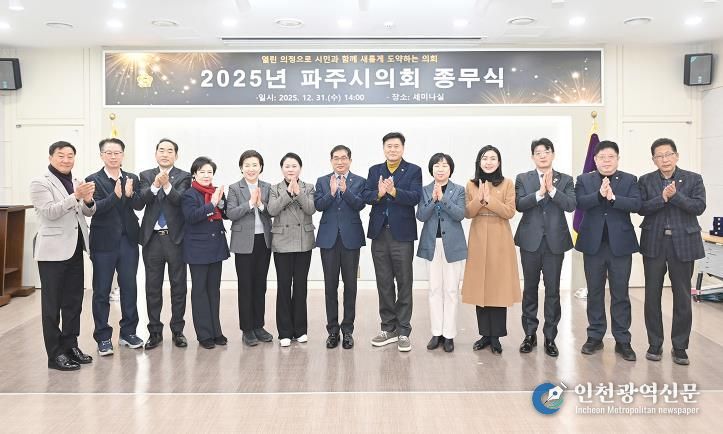 [인천광역신문] 박진 기자 | 파주시의회는 12월 31일 오후 2시, 파주시의회 1층 세미나실에서 2025년 종무식을 개최하면서 우수의원 표창에 대한 표창 전수식을 진행했다.