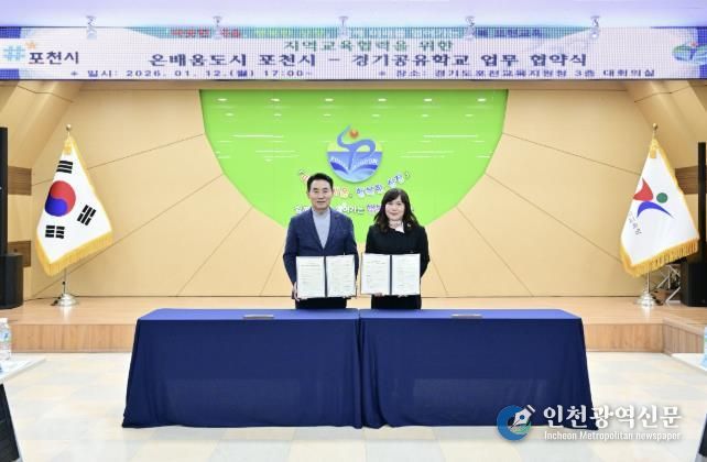 [인천광역신문] 박진 기자 | 포천시와 포천교육지원청은 지난 12일 포천교육지원청 대회의실에서 ‘지역교육협력을 위한 온배움도시 포천시–경기공유학교 업무협약’을 체결했다.