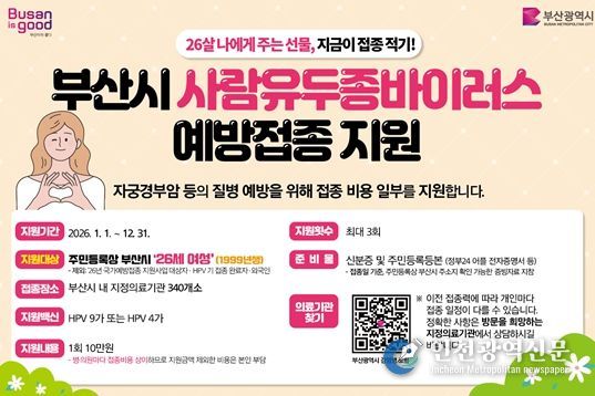 이 사업은 2024년 '부산시 사람유두종바이러스 예방접종 지원에 관한 조례' 제정으로 시작됐으며, 매년 새로운 26세 여성을 대상으로 한다.