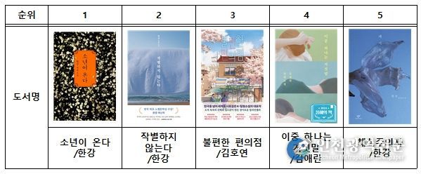 한편, 도서관 빅데이터 분석 플랫폼 '도서관 정보나루'에 따르면, 2025년 부산에서 가장 많이 대출된 도서는 한강 작가의 『소년이 온다』로 나타났다.
