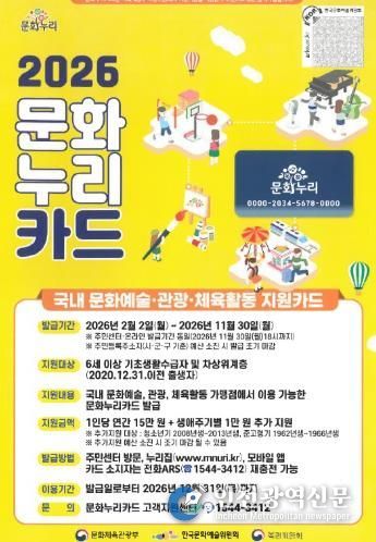 오병창 문화예술과장은 “지원 확대를 통해 문화 취약계층과 청년들이 일상 속에서 문화의 가치를 더 깊이 체감할 수 있기를 바란다”고 말했다.
