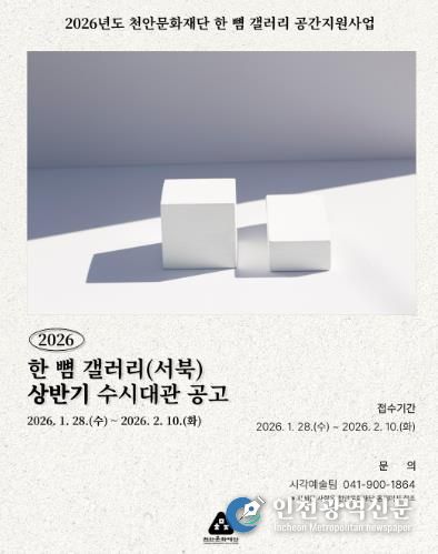 [인천광역신문] 박진 기자 | (재)천안문화재단은 오는 28일부터 상반기 한 뼘 갤러리 수시대관 공모 접수를 받는다고 27일 밝혔다.
