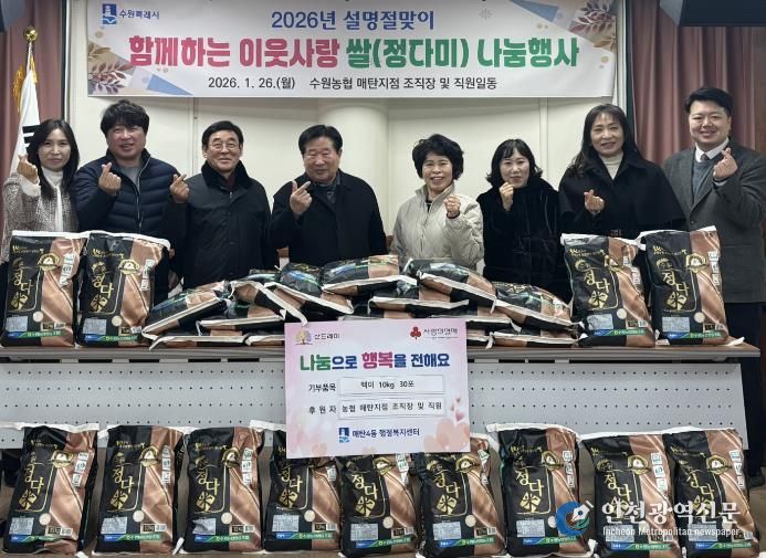 최종천 수원농협 매탄지점 관내이사는 “민족 대명절인 설을 앞두고 임직원들의 정성을 담아 준비했다”며 “농협 쌀로 마련한 이번 나눔이 어려운 이웃들에게 실질적인 위로와 희망이 되기를 바란다”고 전했다.