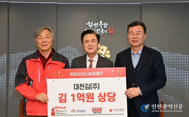 [인천광역신문] 박진 기자 | 충남도는 대천김으로부터 1억원 상당의 김을 기탁받았다고 27일 밝혔다.