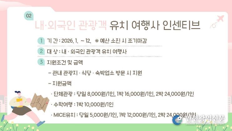 [인천광역신문] 박진 기자 | 광양시는 단체 관광객 유치를 통해 체류형 관광을 확대하고 지역 관광산업 활성화를 도모하기 위해 2026년 내·외국인 관광객 유치 여행사 인센티브 지원 사업을 추진한다.