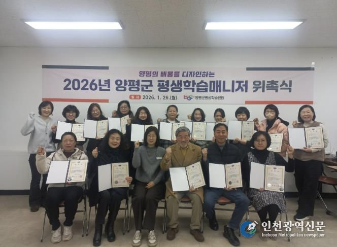 [인천광역신문] 박진 기자 | 양평군은 26일 평생학습센터에서 ‘2026년 양평군 평생학습매니저 위촉식’을 성황리에 개최했다.