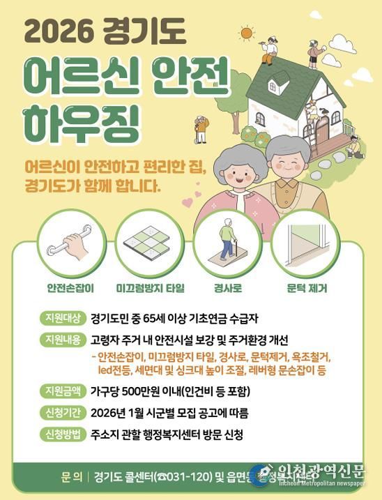 [인천광역신문] 박진 기자 | 안성시는 지역 고령자와 에너지 공과금 부담이 심한 저소득층을 위해 ‘2026년 어르신 안전하우징·햇살하우징 사업’ 대상자를 2월 13일까지 모집한다.