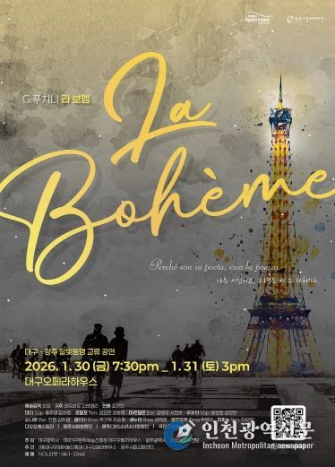 [인천광역신문] 박진 기자 | 대구문화예술진흥원 대구오페라하우스는 2026 첫 공연으로 광주시립오페라단 제작의 푸치니 오페라 '라 보엠'을 1월 30일 오후 7시 30분, 31일 오후 3시에 대구오페라하우스에서 선보인다.