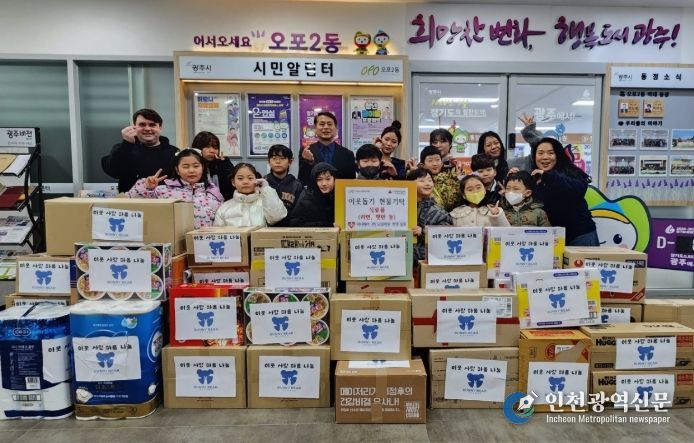 [인천광역신문] 박진 기자 | 광주시 양벌동에 위치한 버니베어 전인교육학원 학생들은 27일 오포2동 행정복지센터를 방문해 주변의 어려운 이웃을 위한 식료품을 전달했다.