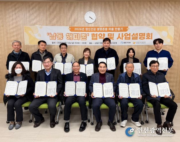 [인천광역신문] 관리자 기자 | 인천시 남동구는 최근 지역주민에게 필요한 복지 서비스 자원 연계와 고위험군 발굴을 위해 13개 단지 아파트와 정신건강 생명 존중 마을 만들기 ‘남동 해피존’ 협약식 및 사업설명회를 개최했다고 19일 밝혔다.
