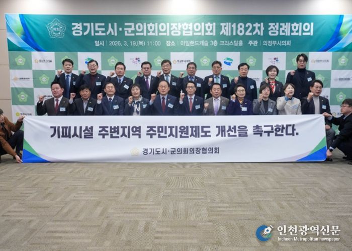 [인천광역신문] 관리자 기자 | 포천시의회 임종훈 의장은 19일 의정부 아일랜드캐슬 크리스탈홀에서 열린 경기도시·군의회의장협의회 제182차 정례회의에 참석해 기피시설 주변지역 주민지원제도 개선을 촉구했다.