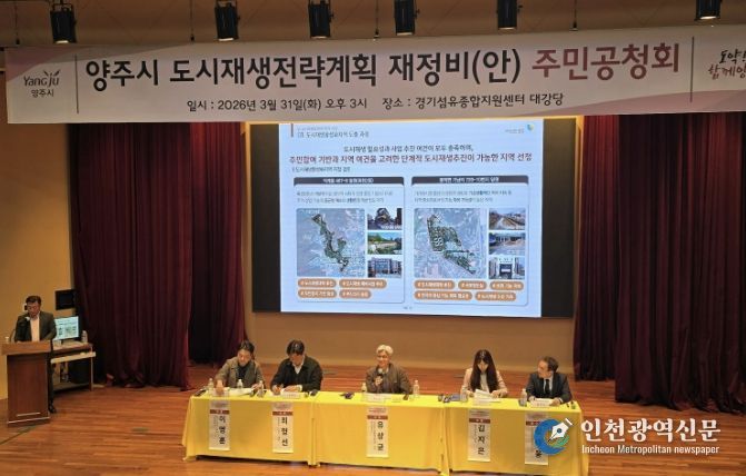 [인천광역신문] 관리자 기자 | 양주시가 지난 31일 경기섬유종합지원센터 대강당에서 ‘양주시 도시재생전략계획 재정비 수립’을 위한 공청회를 개최했다.