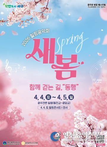 [인천광역신문] 관리자 기자 | 광주광역시 서구가 완연한 봄을 맞아 오는 4일과 5일 광주천변 (광천동~유덕동 광암교) 일원에서 ‘제4회 힐링음악회 새봄’을 개최한다.