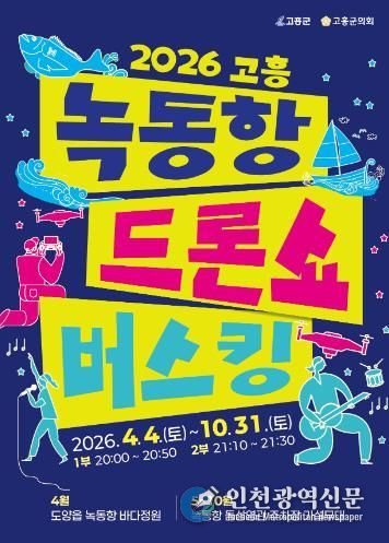 [인천광역신문] 관리자 기자 | 고흥군은 4월 4일부터 10월 31일까지 매주 토요일 저녁 8시, 녹동항 바다정원 일원에서 ‘2026 고흥 녹동항 드론쇼 버스킹’ 공연을 개최한다고 밝혔다.