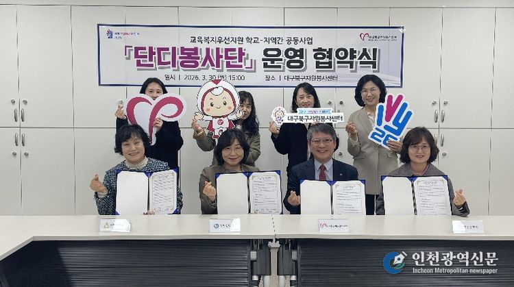 [인천광역신문] 최예준 기자 | 대구북구자원봉사센터(센터장 고진호)는 지난 3월 30일, 학교·지역 간 협력 기반 구축을 통해 청소년 자원봉사 활성화를 도모하고자 관내 중학교와 업무협약을 체결했다.