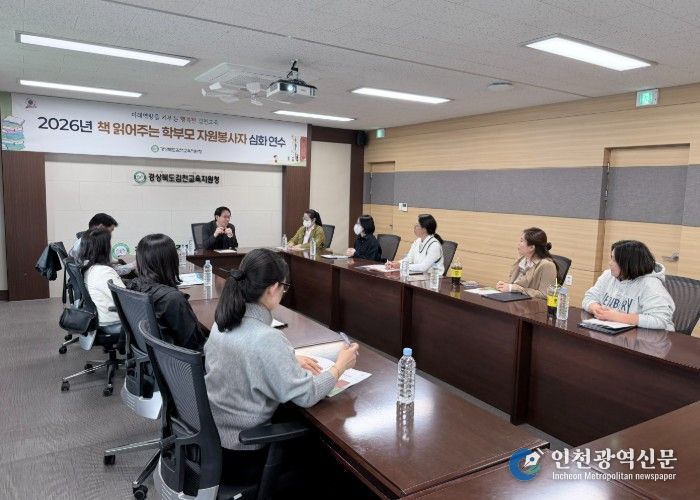 [인천광역신문] 최예준 기자 | 경상북도김천교육지원청은 4월 3일 김천교육지원청 회의실에서 관내 책 읽어주는 학부모 자원봉사자를 대상으로 '2026년 책 읽어주는 학부모 자원봉사자 심화 연수'를 실시했다.