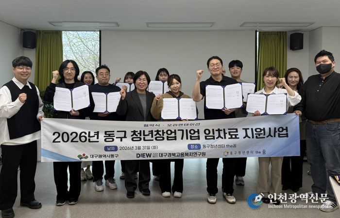[인천광역신문] 최예준 기자 | 대구 동구청은 지난달 31일 동구청년센터에서 ‘청년 창업기업 사무실 임차료 지원사업’ 선정 기업들과 협약을 체결하고 본격적인 지원에 나섰다.