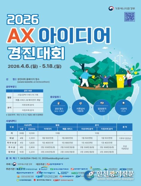 [인천광역신문] 최예준 기자 | ‘인공지능 대전환(AX, AI Transformation)’이 기후·환경·에너지 분야에서도 본격화되는 가운데 국민이 직접 제안한 아이디어로 생활 속 환경·에너지 문제를 해결할 수 있는 통로가 열린다.