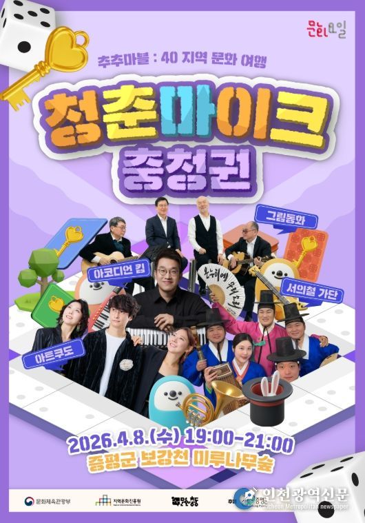 [인천광역신문] 최예준 기자 | 충북 증평군은 오는 8일 오후 7시 보강천 미루나무숲에서 거리공연 ‘청춘마이크’를 개최한다고 밝혔다.
