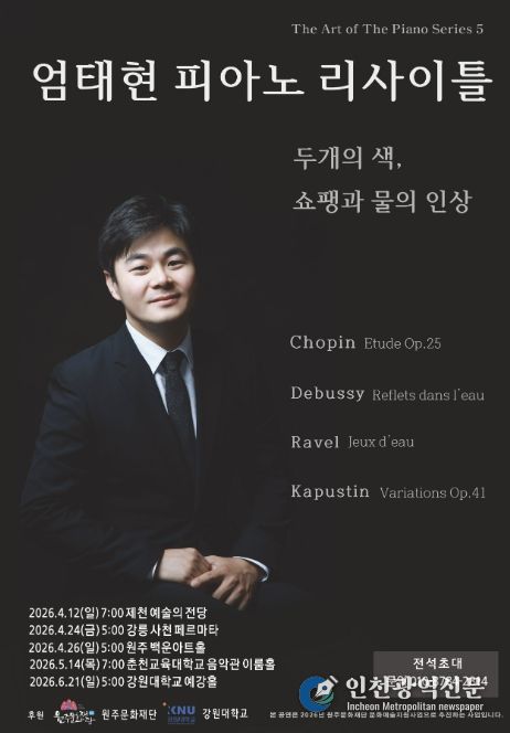 [인천광역신문] 최예준 기자 | 제천 출신 피아니스트 엄태현 피아노 리사이틀이 오는 4월 12일 7시 제천 예술의 전당에서 열린다.