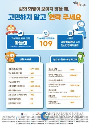 한편, 우울감 등으로 도움이 필요한 경우 자살예방 상담전화 또는 곡성군정신건강복지센터를 통해 상담을 받을 수 있다.