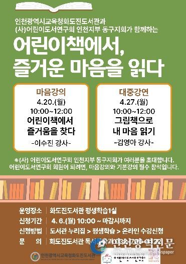 [인천광역신문] 최예준 기자 | 인천광역시교육청화도진도서관은 (사)어린이도서연구회 인천지부 동구지회와 협력하여 ‘어린이책에서, 즐거운 마음을 읽다’프로그램을 운영한다.