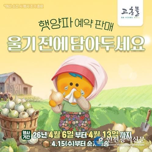 [인천광역신문] 최예준 기자 | 고흥군이 운영하는 온라인 쇼핑몰 ‘고흥몰’은 제철을 맞은 고흥산 햇양파를 보다 합리적인 가격으로 선보이기 위해 ‘거금도 햇양파’ 예약 주문 판매를 4월 6일부터 13일까지 진행한다고 밝혔다.
