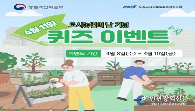[인천광역신문] 최예준 기자 | 농림축산식품부는 도시농업이 주는 공익적 가치 및 중요성을 알리고, 도시민들의 도시농업 체험을 통한 즐거움과 공감대를 형성하는 계기를 마련하고자 전국 주요 도시에서 시민들과 함께하는 도시농업의 날 행사를 추진한다.