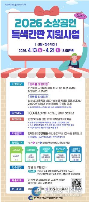 신청을 희망하는 개인 또는 단체는 2026년 4월 13일부터 4월 21일 오후 6시까지 우편 또는 방문 신청할 수 있으며, 자세한 사항은 인천소상공인종합지원포털 또는 인천소상공인종합지원센터 누리집에서 확인할 수 있다.