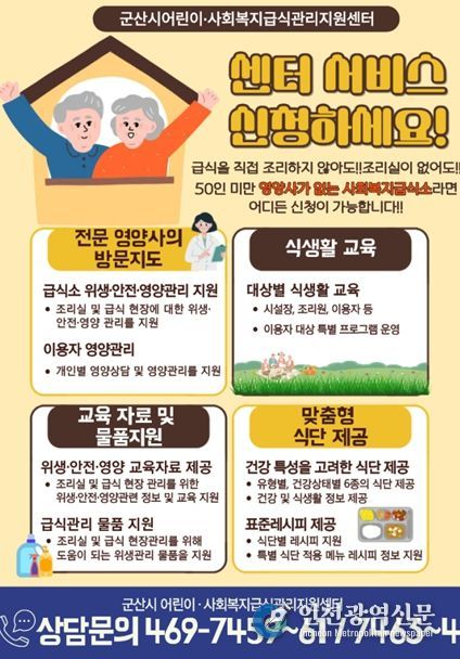 문의는 군산시 어린이·사회복지급식관리지원센터로 하면 된다.
